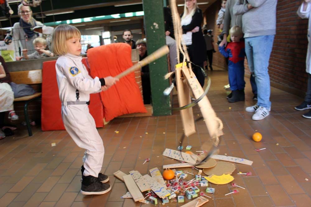 Det krævede mange slag at befri katte og klementiner fra tønderne, da Stavtrup Grundejerforening afholdt årets fastelavnsarrangement søndag den 3. marts.